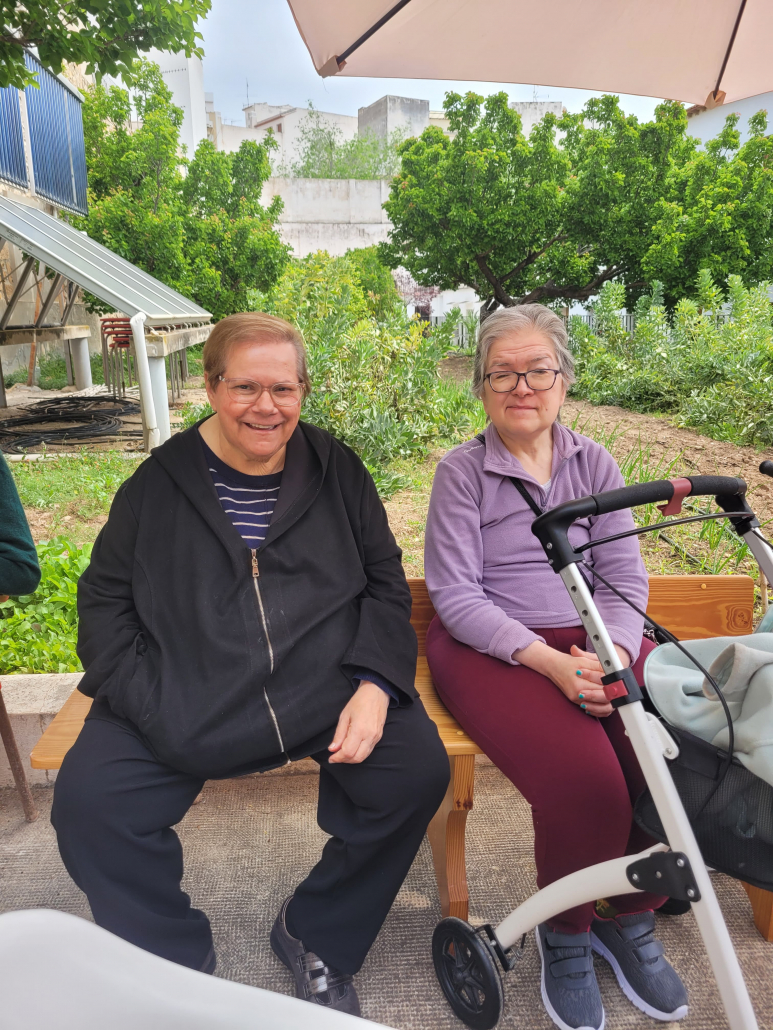Los usuarios pasan un rato en la parte del jardín, toman el sol, y realizan actividad física cuando sea necesario.